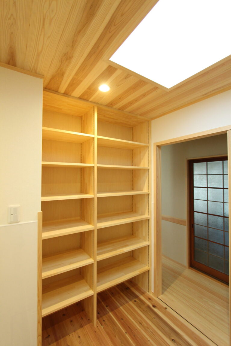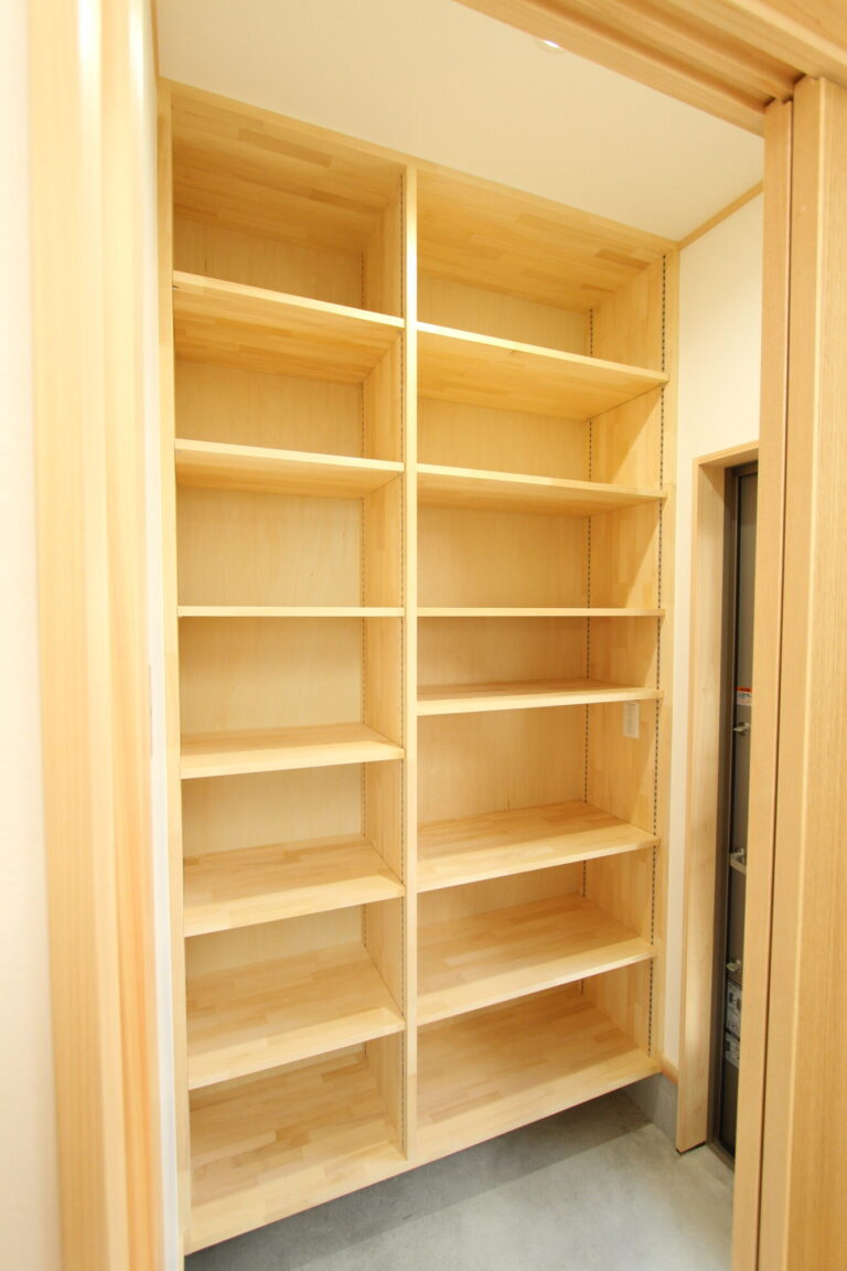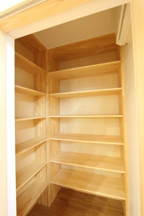 キッチン近くに設置する収納全般、オープン型の壁面収納も広い意味でのパントリーです。
