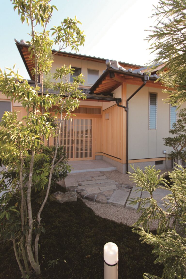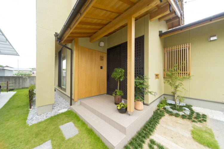 玄関建具は、今では珍しくなった高級柾目桧材です。
