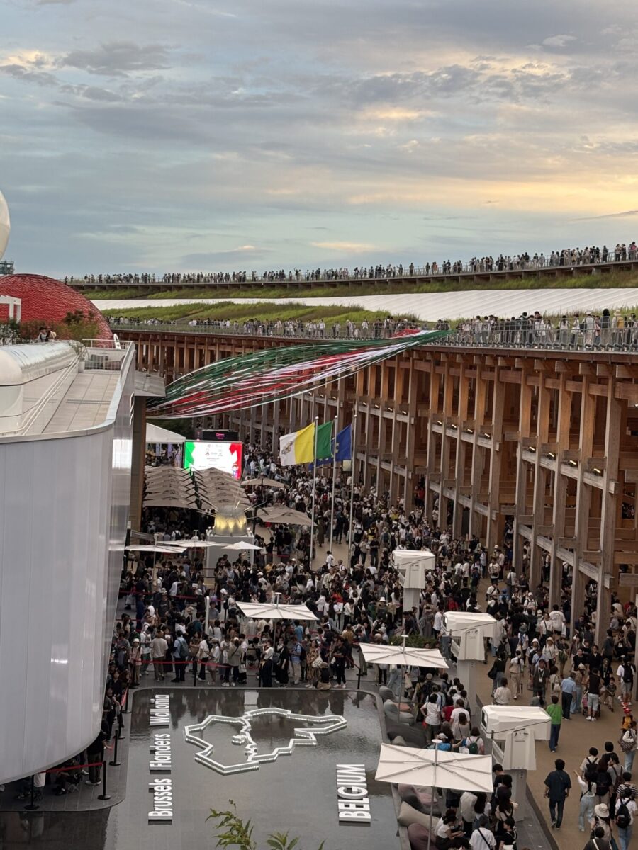 大屋根リングに登って上から眺めると、世界中の個性あふれる建物のパビリオンが広がっていて、その景色も圧巻でした。