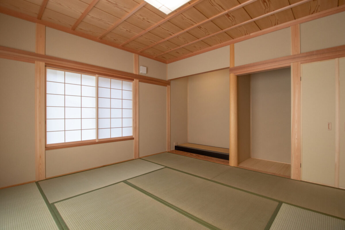 こちらのお住まいには、最近では珍しくなってきた、床の間のあるジュラク壁の和室があります。