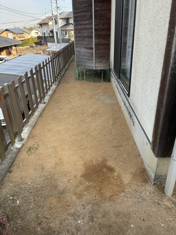 今回、古いデッキを撤去して真砂土を入れ整地しました。