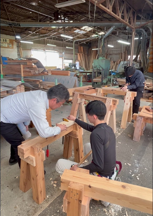 私たちは、神社仏閣の修繕や神輿の製作も任される技術を若手に伝承しています。機械にはできない「木を読み、手で刻む」技術があるからこそ、既製品にはない木の力強さを引き出した、唯一無二の家づくりが可能になるのです。