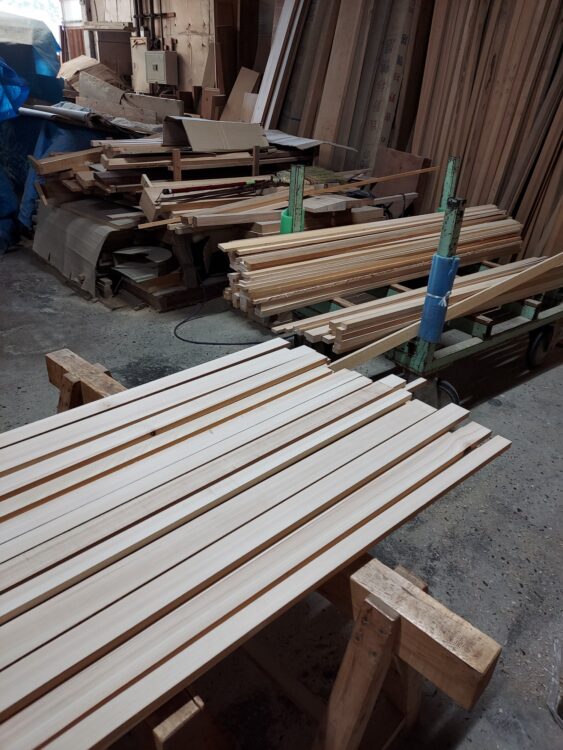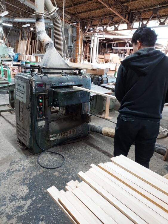 資材課では、木についての簡単な説明と、雑巾摺り(ゾウキンズリ)の加工、面取りをしてもらいました。