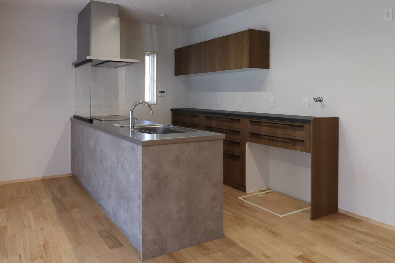 LDKに配置した対面キッチンは、