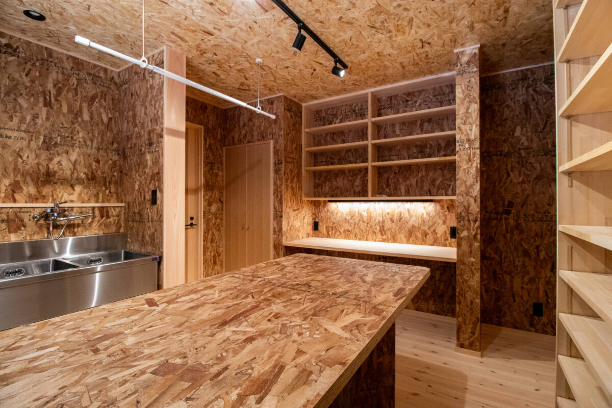壁・天井にはOSB合板を取り入れ、