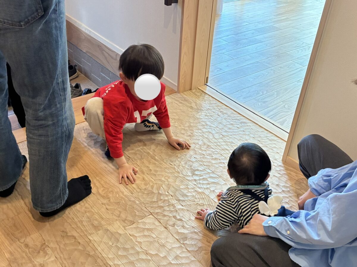 完成したお家の中を元気いっぱいに動き回るお子さまの姿に、